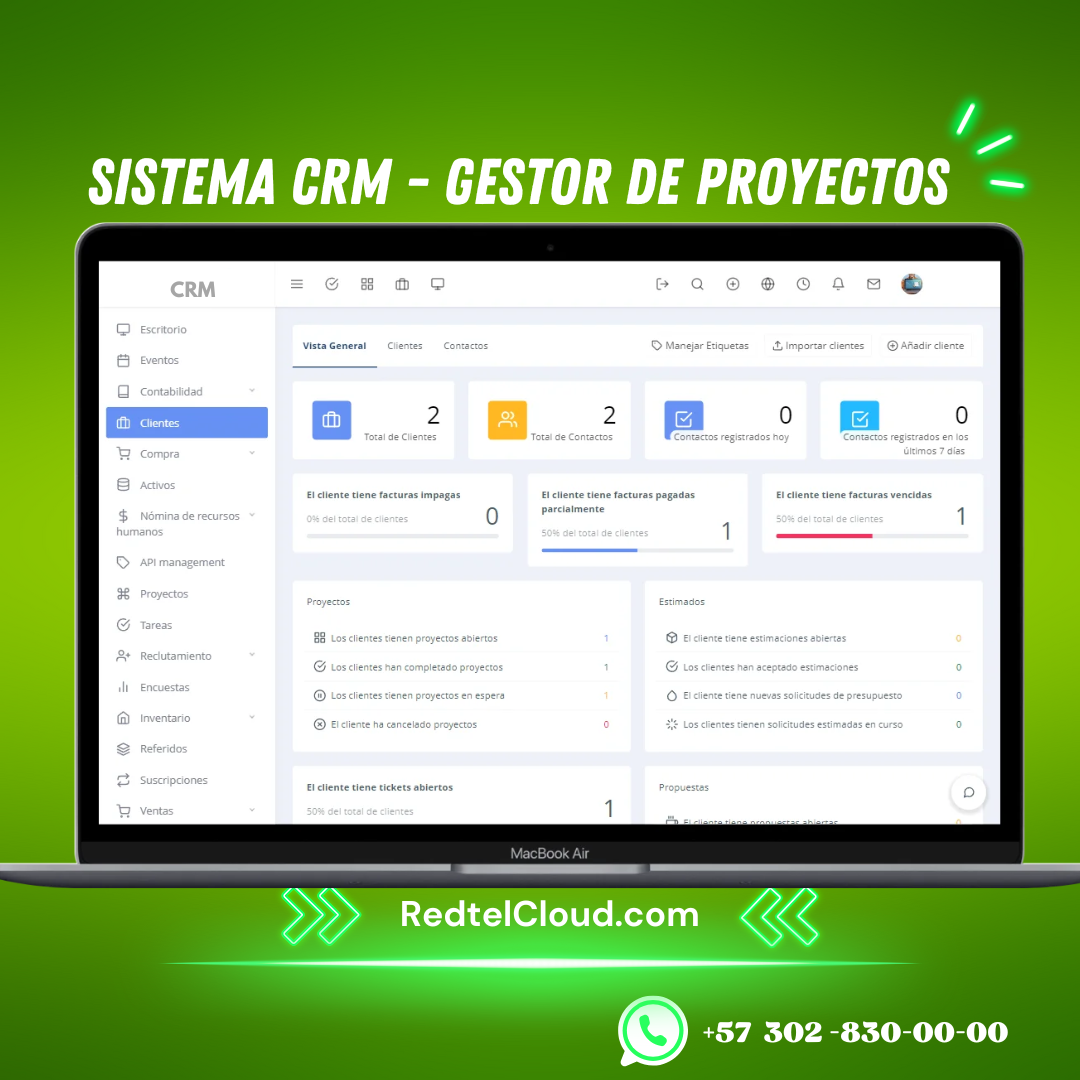 Gestione a sus clientes y sus contactos sin esfuerzo. Registre a los clientes, agréguelos manualmente o impórtelos desde Excel. Acceda a detalles completos sobre proyectos, tareas, facturas, pagos, presupuestos, pedidos, detalles de contratos, propuestas, tickets, notas, archivos, eventos, gastos y más. Simplifique el seguimiento categorizando a los clientes con grupos de clientes y etiquetas.
