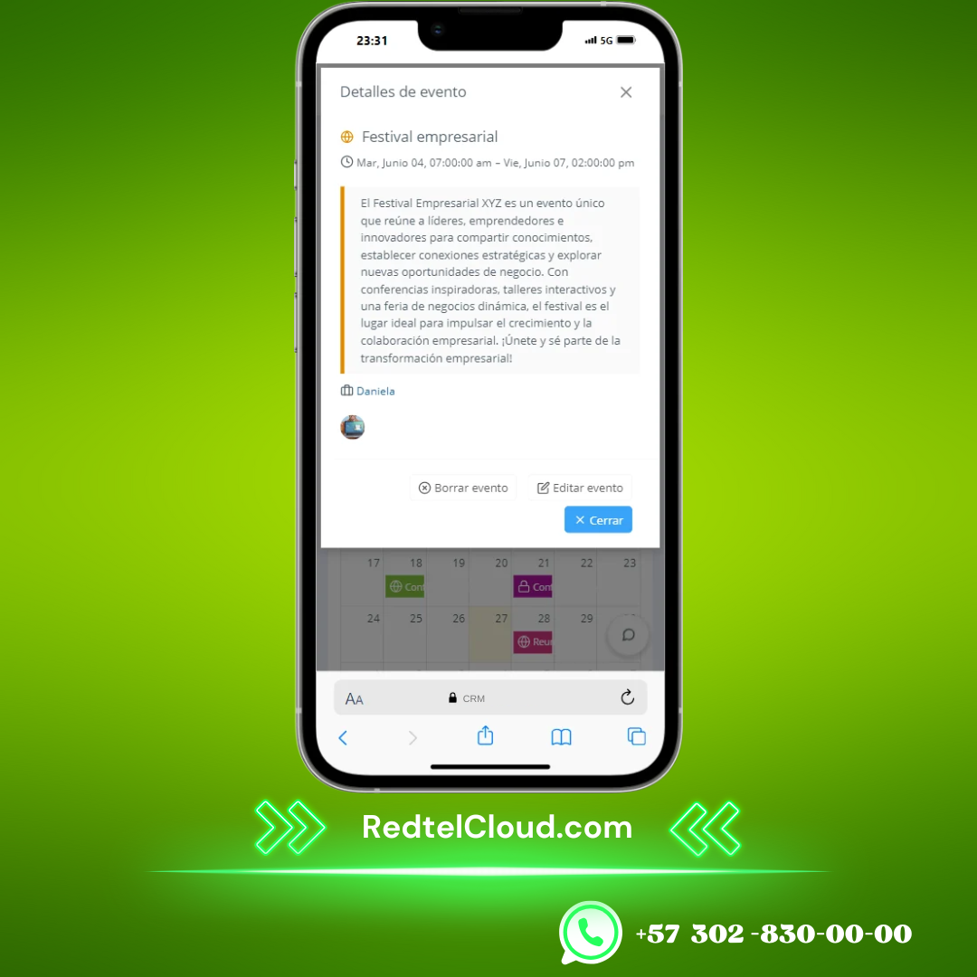 Recordatorios personalizados : tome el control de su agenda configurando recordatorios individuales para distintas tareas. No se olvide nunca de un seguimiento o una fecha límite importante, lo que garantiza un enfoque proactivo y organizado de su trabajo.