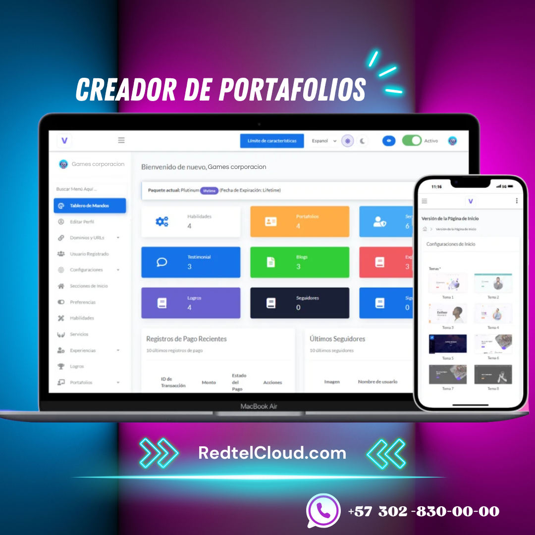 – Gestión de portafolios, blogs, servicios, habilidades, logros, etc.