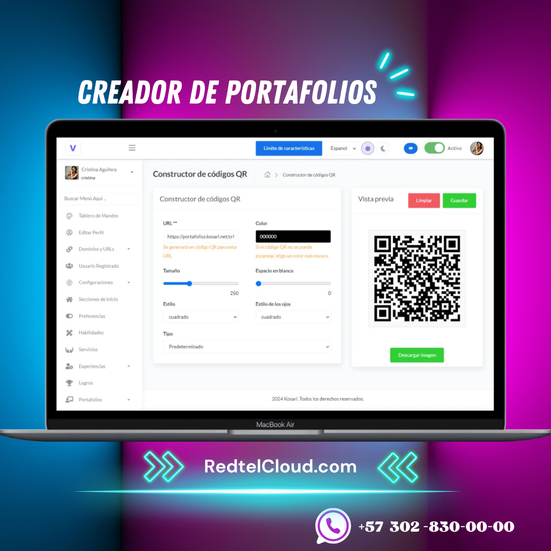 Panel de usuario avanzado: Los usuarios pueden acceder a un panel para diseñar sitios web de portafolios multilingües, crear vCards y CVs ilimitados. Estos también son compatibles con escritura RTL. Además, incluye un generador de QR avanzado para personalizar códigos QR con filtros según la necesidad.