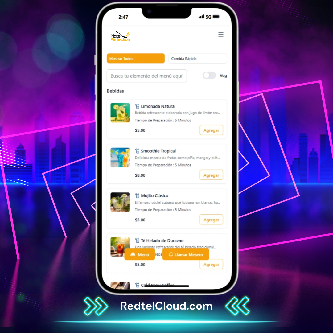 Menú y pedidos con código QR: ofrece navegación y pedidos de menú sin contacto a través de códigos QR para mayor comodidad.