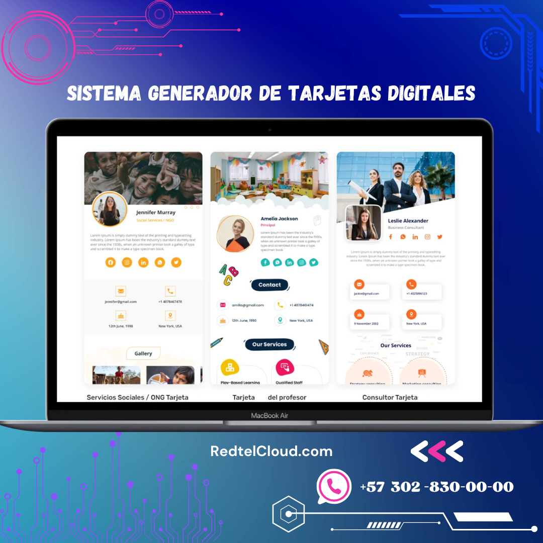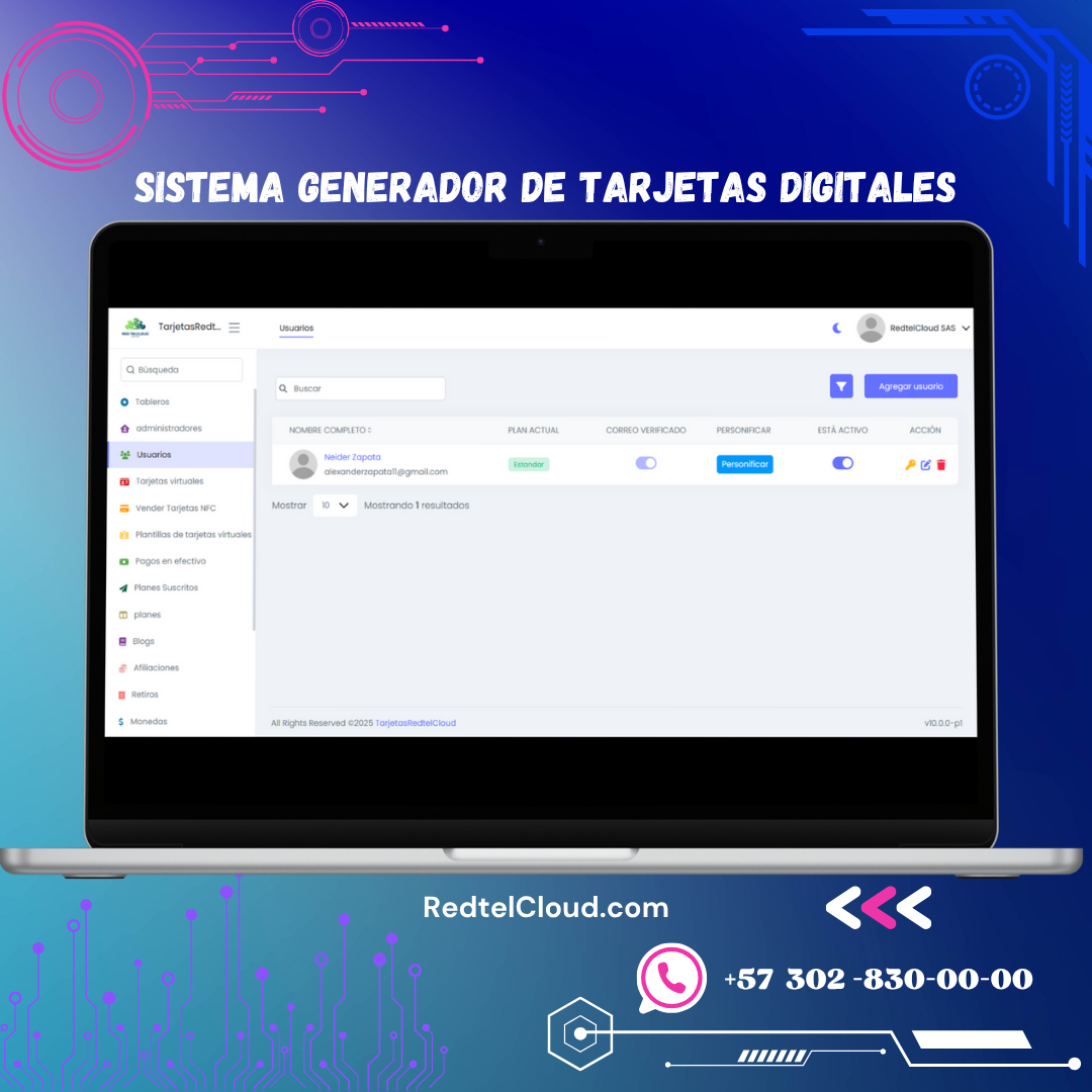 TarjetasRed es un sistema multiusuario para crear tarjetas de presentación digitales personalizadas, ideal para modernizar la imagen profesional.